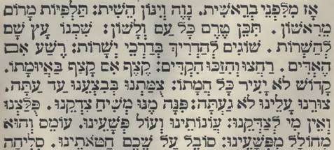 El poema es general es muy interesante, pero dado lo restringido del espacio, lo tomaremos a partir de la frase Pinah menu mashiaj tzidkenu. A partir de ahí la traducción es la siguiente: